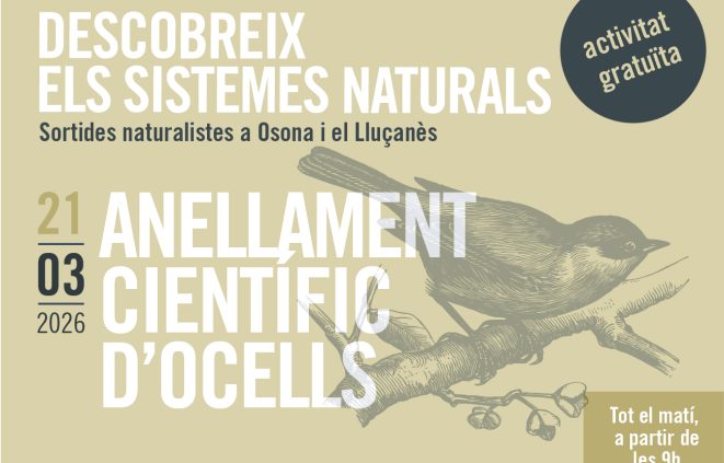 L’anellament científic d’ocells és un mètode d’estudi basat en el marcatge individual dels ocells. Qualsevol registre d’un ocell anellat pot oferir una gran quantitat d’informació de la seva biologia, especialment dels seus desplaçaments. Es farà una jornada d’anellament científic en què s’ensenyarà com identificar els ocells, com manipular-los, com s’estudien, la seva biologia, les seves migracions i els estudis concrets que en fa el Grup d’Anellament de Calldetenes – Osona.