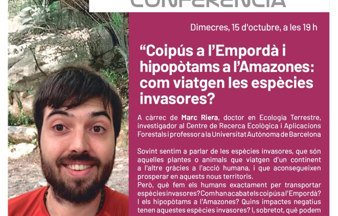 Conferència a càrrec del doctor Marc Riera. Doctor en Ecologia Terrestre, investigador al Centre de Recerca Ecològica i Aplicacions Forestals, i professor a la Universitat Autònoma de Barcelona.
