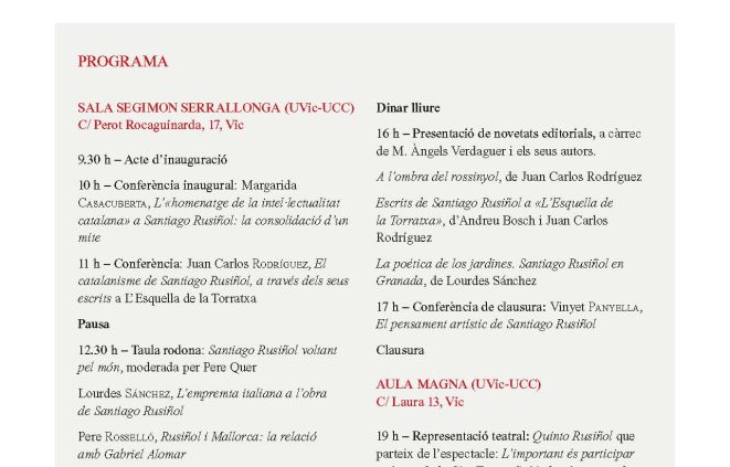 La Càtedra Verdaguer d’Estudis Literaris de la UVic-UCC pretén commemorar el centenari de l’homenatge que es va tributar a Santiago Rusiñol els darrers mesos de 1925 i el gener de 1926, i que es va batejar com a l’Homenatge de Catalunya.